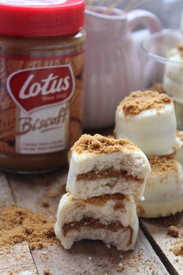 Hace tiempo que quería hacer alfajores, pero ya sabéis que me gusta la originalidad y ya que tenía galletas y crema Lotus®, me dije, porqué no? Son totalmente adictivos, esa galleta que se deshace en la boca, el chocolate crujiente por fuera y ese relleno caramelizado... una auténtica bomba! Ingredientes: 60 gramos de mantequilla 100 gramos de azúcar blanco 2 huevos M 80 gramos de harina 200 gram ...