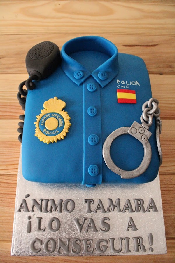 Hola, hoy os quiero enseñar una tarta que he hecho para una chica que está estudiando para ser policía. Sus amigos me encargaron esta tarta para darle ánimos para seguir adelante con su sueño. La tarta tenía un bizcocho de chocolate y la crema era de chocolate y avellanas. También use esta crema (swiss meringue buttercream) para cubrir la tarta antes de ponerle el fondant. Casi siempre uso ganache ...