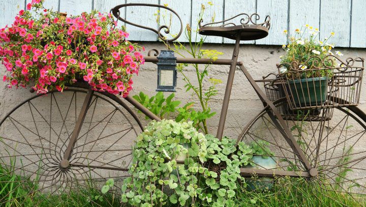 RECICLANDO BICIS... VIAJANDO EN INTERNET ENCONTRÉ VARIAS FOTOS QUE TENÍAN UNA COINCIDENCIA, Y ME GUSTARON.. EN TODAS ELLAS HABÍA UNA BICICLETA COMO PROTAGONISTA.. PENSÉ SI, QUEDA HERMOSO, RECICLEMOS ESA ANTIGUA BICI FAMILIAR CONVIRTIÉNDOLA EN UN OBJETO DE DECORACIÓN, USEMOS PINTURA, O DEJEMOSLA DESGASTADA, PERO ESO SI ...ES NECESARIO UNA CANASTA O UNA MACETA CON HERMOSAS FLORES... MIREN ALGUNAS.. ...