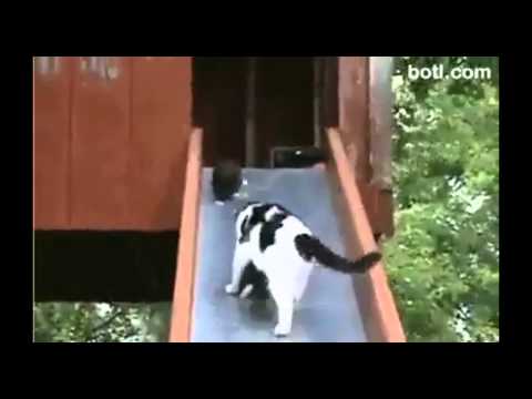 Estos gatitos se le escapan a su mamá gata en un tobogán. Mientras ella intenta rescatar a uno, el otro se le va. Sin duda, una escena muy divertida :D