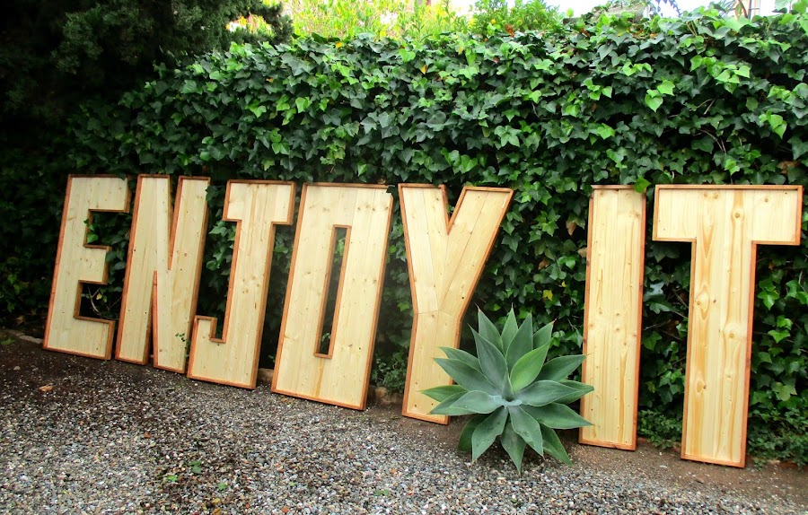 ¡Disfrútalo!. Sin duda el mensaje de estas palabras era premonitorio porque desde luego he disfrutado como un niño chico haciendo este encargo tan molón, unas letras de madera con un mensaje genial. Y es que es verdad, no os podéis hacer una idea lo que me he divertido y lo que he disfrutado haciendo estas letras. Desde el lijado, que ya es difícil pasarlo bien con eso jaja, hasta el barnizado, pa ...