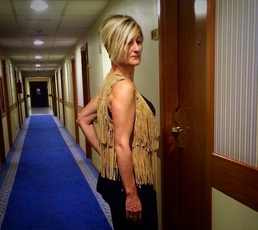 Muy buenos días! Después de un largo fin de semana, intenso y muy muy disfrutado, vuelvo hoy lunes, aunque aquí en Madrid hoy es fiesta. Os muestro el look que llevé el viernes para el campeonato mundial de salsa, perdonad por la calidad de las fotos(...) Un chaleco de ante con tachas en las sisas de Blanco, una camiseta de Berska y unos leggins efecto piel de Calzedonia. Y además también me véis ...