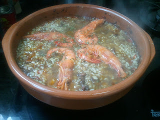 Un modo sencillo y económico de elaborar un exquisito plato de arroz Ingredientes (para 4 personas): 8 tacitas de arroz 1 cebolla 1 lata de chipirones en su tinta 1 lata de chipirones en aceite harina agua con gas fría caldo de pollo Un puñado de avellanas 1 ajo perejil 4 gambas Elaboración: Sofreímos la cebolla a fuego muy lento hasta que esté muy poch ...