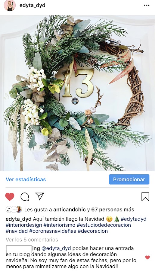 Bien M.J., aparte de ser tu interiorista, voy a ver si soy capaz de devolverte un poco la ilusión por la Navidad. Quiero contarte alguna de mis cosas más íntimas, para darte ideas e intentar que la recuperes. Al igual que tú, no soy muy fan de estas fechas, no suelo decorar la casa por Navidad, quitando la corona que ya has visto en Instagram jeje. todo lo que pones, luego hay que quitarlo, y sinc ...