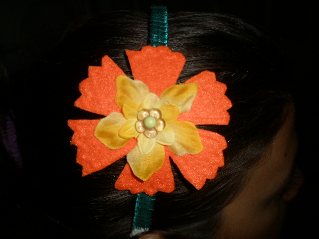 Cintillo mamey con lacito en cinta combinado Cintillo con estrellas en fieltro y flores de cinta en el centro Cintillo rosado con flores en foami, y centros con perlitas Cintillo forrado en cinta roja, de puntitos blancos, con flor en foami, y boton en pasta en forma de flor..