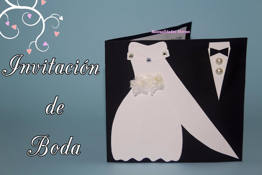 Hoy os muestro cómo hacer una invitación de boda muy fácil y bonita. Materiales Strass,, medias perlas o botones pequeños Cartulina negra y blanca Pegamento, lápiz Cinta con flores Tijeras y plantilla Videotutorial Plantilla