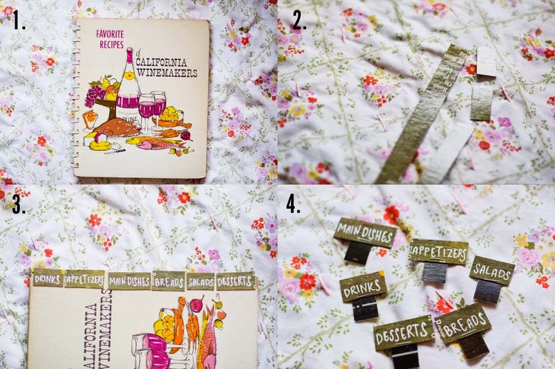 PASO A PASO: Libro de recetas. Imagen via:www.abeautifulmess.com 1-Usamos un cuaderno, o antiguo libro de recetas. 2-Cortamos el cartón en pequeños pedazos, que usaremos de separador por categoría. 3-En esos pequeños pedazos de cartón que ya le pondremos las categorías de nuestro recetario, le pagamos una pequeña pestaña de cartón 4-Esas pestañas las pegamos en el cuaderno, previamente separado ...