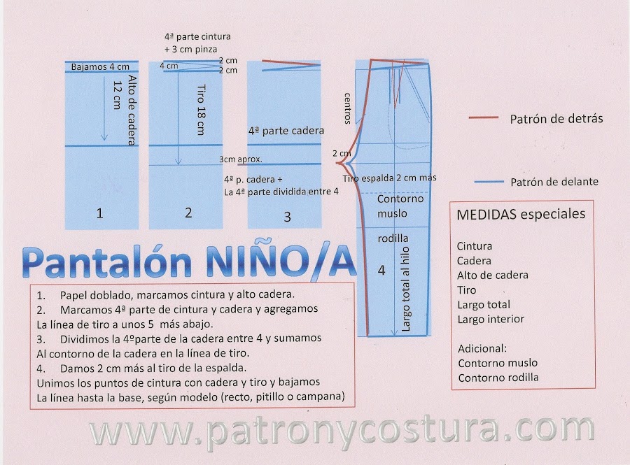 patrón y costura: cómo hacer el patrón del pantalón de niño/a paso a paso: pantalón niño/a 1º se recorta por la línea exterior: parte de detrás 2º separamos papel y recortamos la línea de la parte de detrás: parte de delante Hasta ahora hemos visto el pantalón de señora, de caballero, y ahora vamos a ver como se hace para nuestros hijos más pequeños. Tomamos las medidas de su cintura, cadera, e ...