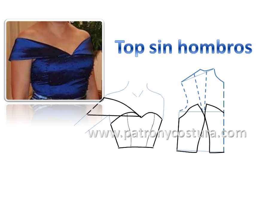 Patrón y costura, nos muestra cómo realizar un bonito top sin hombros, pero cubriendo un poco el brazo: Para realizar el patrón: Paso 1: tomarnos bien las medidas (ver tema) Paso 2: realizar el patrón base. (ver tema) Paso 3: realizar transformación de la pinza; cerramos la pinza del pecho y abrimos en el hombro. Mirad la imagen. Paso 4: dibujamos el corte del escote en corazón. Paso 5: medimos e ...