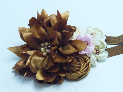 flores paso a paso en cinta para decorar ganchos, diademas, balacas