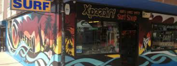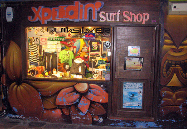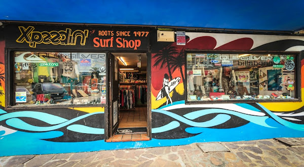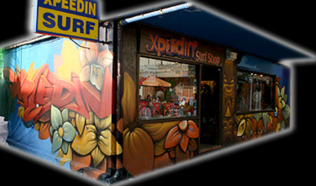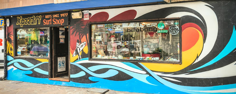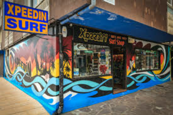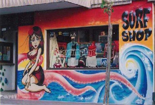 La fachada de la tienda Xpeddin, también con los años ha ido cambiando sus dibujos,esta fachada es la antigua que tenían, e esta es de las primeras tiendas de Surf que se abrieron en Cantabria, pionera y muy especial, sobre todo en la época que abrió sus puertas.