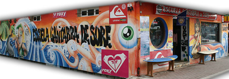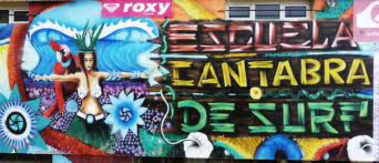 Para esta entrada lo mas parecido a arte urbano, bueno no lo mas parecido, lo es, ya que son DIBUJOS con mucho arte, son las paredes de la ESCUELA CANTABRA DE SURFy de la tienda XPEEDIN.