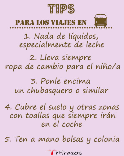 Y es que en el primer viaje nos pilló por sorpresa.... en el segundo también... y así en unos cuantos más.... pero ahora ya, podemos decir bien alto que estamos preparados para estos viajes, aunque nunca se está lo bastante preparado realmente, ¿ verdad ?, ; ) Ahí van nuestros consejos en forma de cartel : 1. Siempre es una buena opción sustituir la leche por lácteos como el yogurt o fruta, gall ...