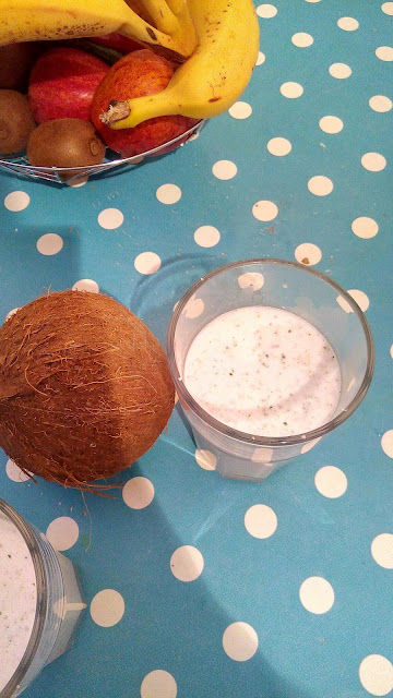 Batido de leche de coco con menta Después de hacer la leche de coco en casa, podemos hacer un batido refrescante ahora que entro la primavera y que podemos beberlo por la tarde ... Con la leche coco agregamos unas 6 hojas de menta fresca y las pasamos por la batidora, podemos añadirle cualquier edulzante y cubitos de hielo para dejarlo más frío... ¡Esta delicioso! PARA MAS RECETAS Y BATIDOS D ...