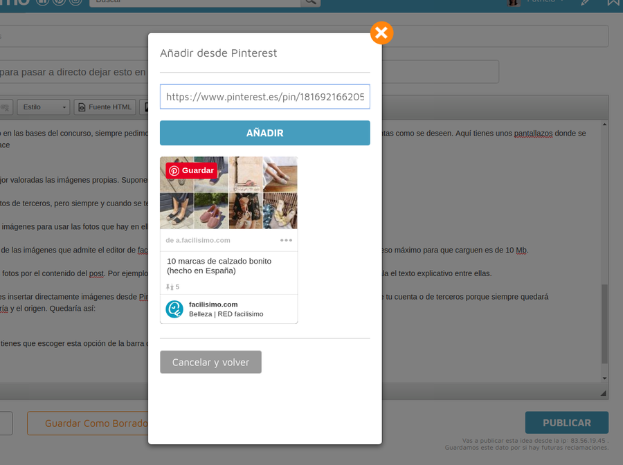 - ¿Sabes que puedes insertar directamente imágenes desde Pinterest o Instagram de forma fácil para ilustrar un post? Pueden ser de tu cuenta o de terceros porque siempre quedará mencionada la autoría y el origen. Quedaría así (post ejemplo):