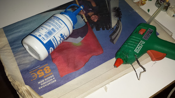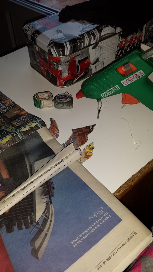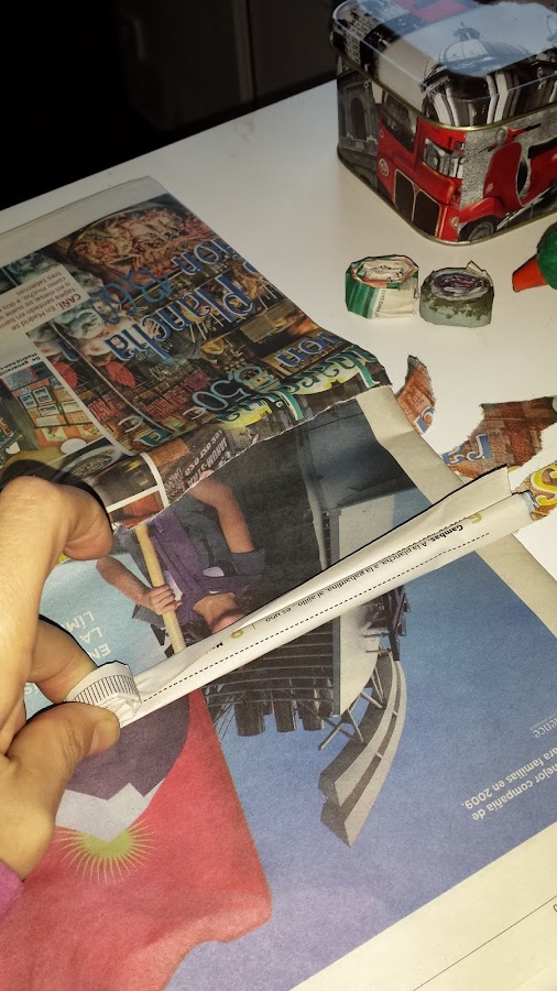 Los materiales son sencillitos, un periódico, cola y silicona