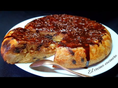 Hoy hacemos un pastel, tarta, torta como lo quieras llamar, de pan con chocolate. Es muy fácil, aprovechas ese pan que se te ha puesto duro y está buenísima!! INGREDIENTES 350gr de pan duro 350 ml de leche 4 huevos 100gr de azúcar 1 cdta de esencia de vainilla 1 cdta de levadura o polvos de hornear 1 /2 cdta de canela 1 cda de mantequilla 50 gr de pepitas de chocolate Sirope de chocolate al g ...