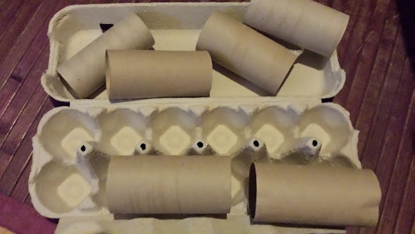 Hemos ido guardando latas, rollos de papel, cascara de huevos...vamos diogeneros a tope.