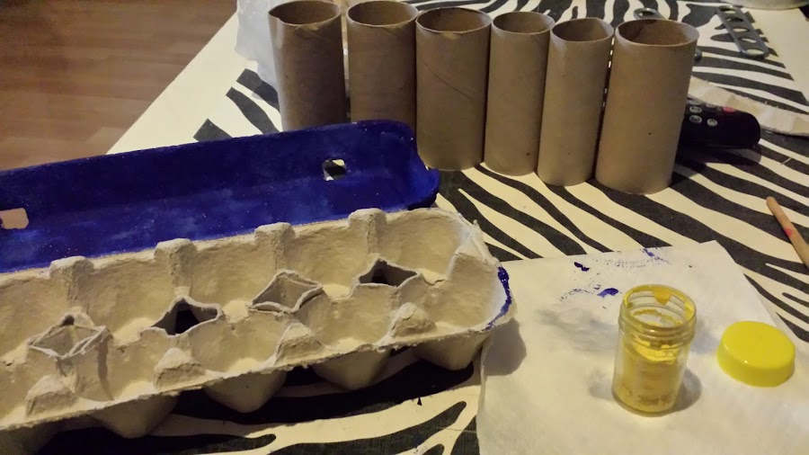 Para hacerlo hemos usado una caja de huevos y unos rollos de cartón y fieltro..