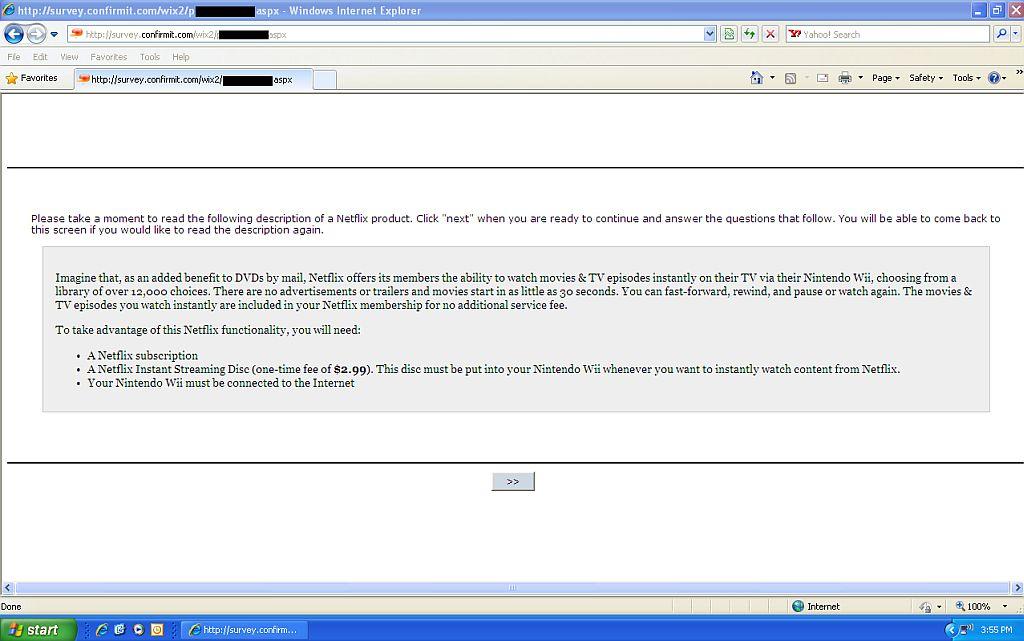 Un lector de Joystiq.com ha recibido una encuesta en línea de Netflix que muestra que la compañía está pensando en poner su servicio en la Wii. Hemos escuchado informes de que las empresas están tratando de transmitir video en la Wii y los propietarios japoneses de Wii ya tienen un tipo de sistema de transmisión de video. ahí está. Si este rumor termina siendo cierto, esto realmente podría ayudar ...