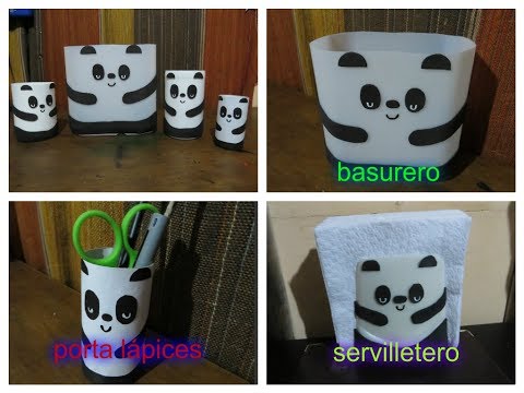 Este oso, se puede hacer en botellas plásticas, tubo de papel higiénico. se ocupa goma eva o foami, pintura blanca y negra, silicona caliente, se le puede dar diferentes usos según el tamaño que lo fabriquemos, los mas pequeños pueden ser como porta lápices, ordenadores,servilleteros, basureros, para guardar juguetes, e incluso como piñatas para un cumpleaños o fiesta, puede decorar el cuarto de l ...