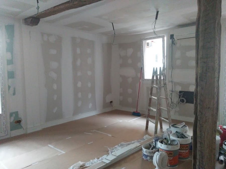 PASO A PASO Actualmente se trabaja con pladur en techos y paredes en prácticamente todo tipo de viviendas . Por su rapidez, por su economía, y por su limpieza, son algunos de los motivos por los que se utiliza tanto hoy en día en cualquier casa, edificio, oficinas, tiendas, etc. Además se pueden colgar baldas, cuadros, esconder tuberías, cables, cubrir paredes en mal estado , hacer cajones, est ...