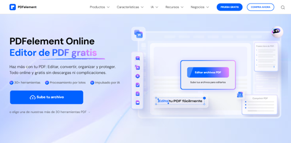 1. Abre PDFelement online. Ve a la web de PDFelement online.