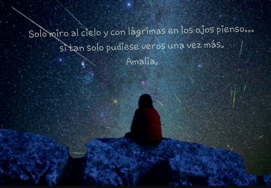 Miro al cielo deseando poder veros pero solo alcanzo a ver estrellas. Entonces cierro los ojos y recuerdo los momentos tan felices que vivimos juntos y os veo sonreír y yo también sonrío. Con una pequeña sonrisa y una lágrima sigo mirando al cielo doy gracias por todo el amor y cariño que me disteis.